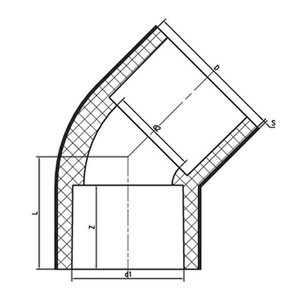 FRP/PVC-C, FRP/PVC-U Fiberglas Takviyeli Plastik Kaplamalı 45° Dirsek