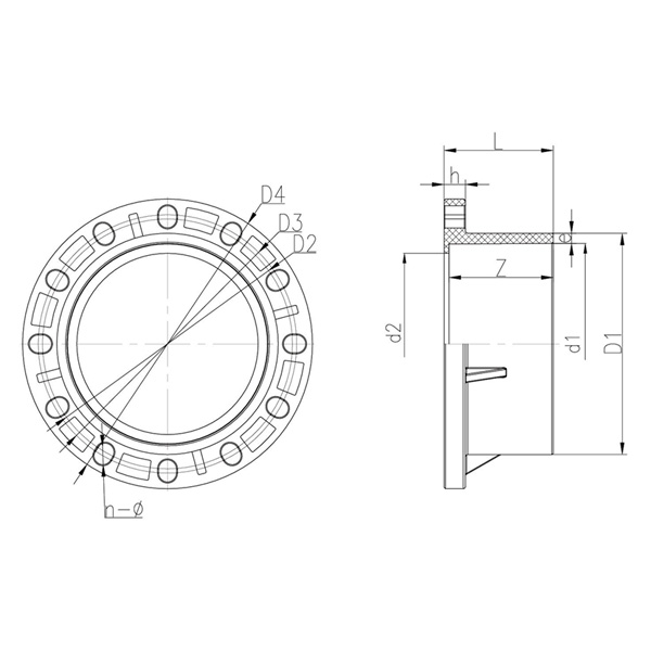 DN D1 D2 D3 D4 d1 d2 L h Z e n-ø