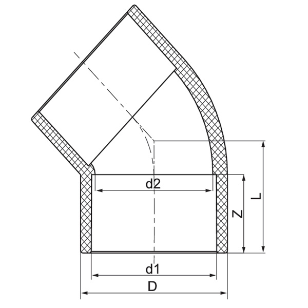 Süper Dayanıklı Açık Gri PVC-C 45° Eşit Dirsek, Profesyonel Standart Boyutlar DN15-DN600, PVC-C 45° Dirsek Boru Bağlantı Elemanı, ANSI SCH80 Standardı