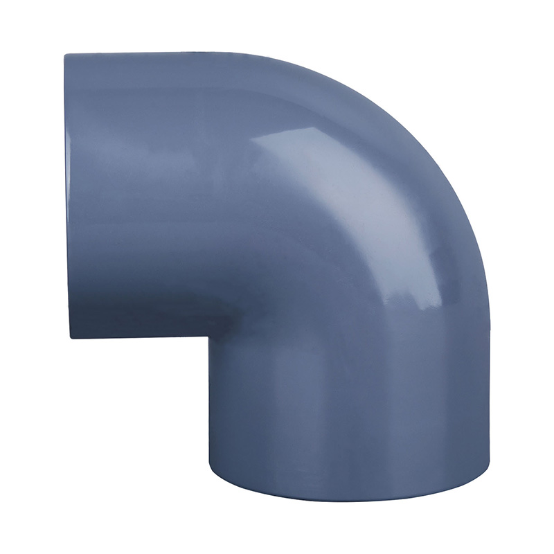 Yüksek Kaliteli Açık Gri PVC-C 90° Dirsek, Eşit, DN15-DN600, Kimya ve Su Endüstrisi için 1,0-1,6MPa Çalışma Basıncı, Plastik Boru Bağlantı Elemanı, ANSI SCH80 Standardı