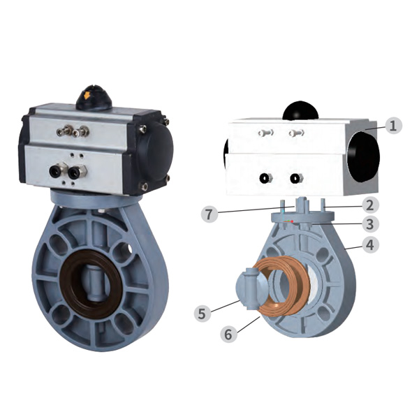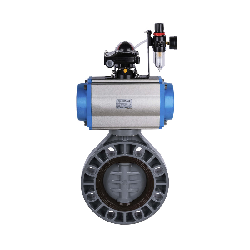 PVC-C Pnömatik Otomatik Kelebek Vana, Merkezi Contalı Yumuşak Contalı, DN40-1000, Endüstriyel ve Evsel Plastik Vana, JIS Standardı